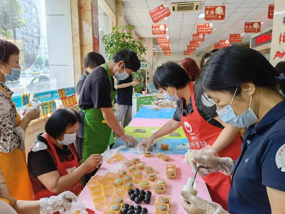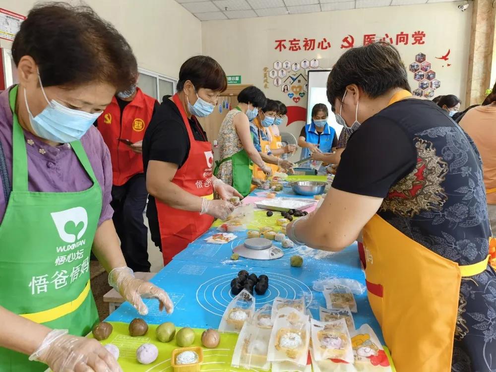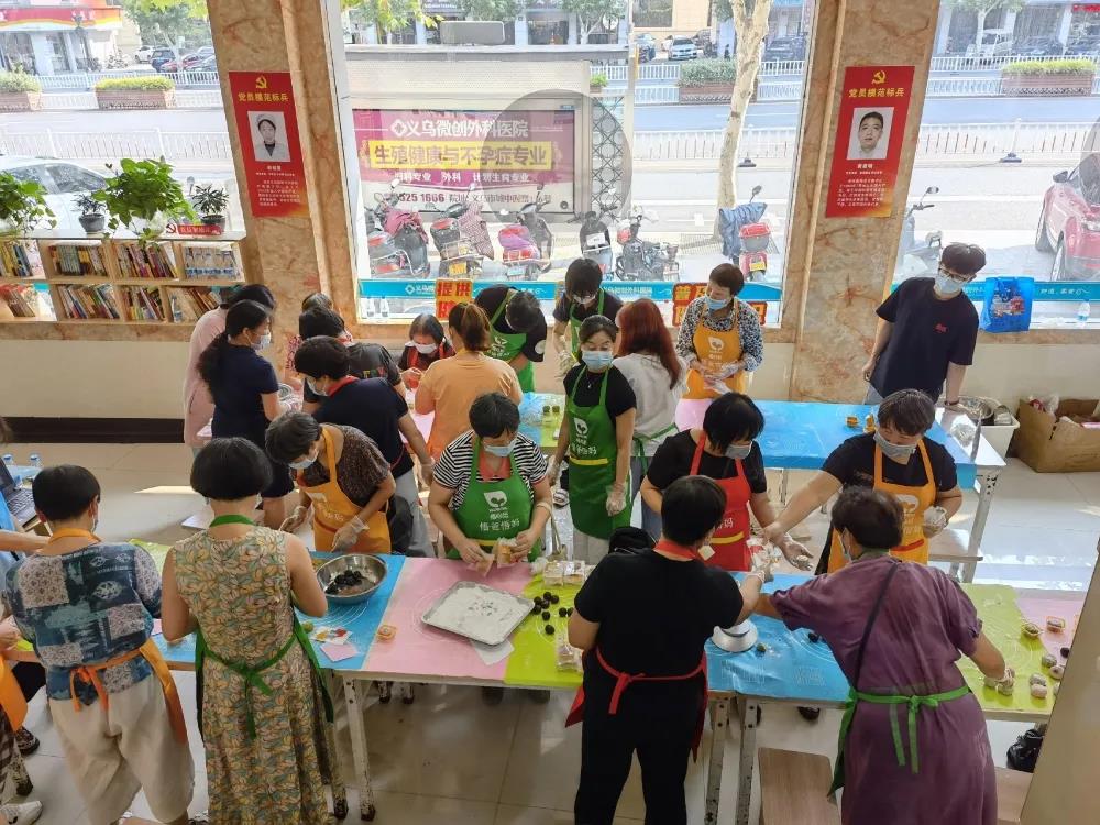 为弘扬传统文化,增进邻里感情,稠城街道社区在义乌医院开展了“巧手做月饼活动”